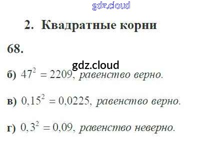 Ответ на задание 68 Рабочая тетрадь Алгебра за 8 (восьмой) класс Минаева, Рослова 2017 Часть 1, 2