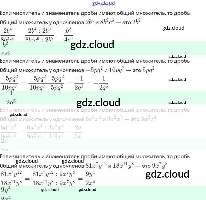 Ответы. §2. Основное свойство дроби. Сокращение дробей по Алгебре 8 класс Рабочая тетрадь Миндюк УМК Часть 1, 2 Просвещение