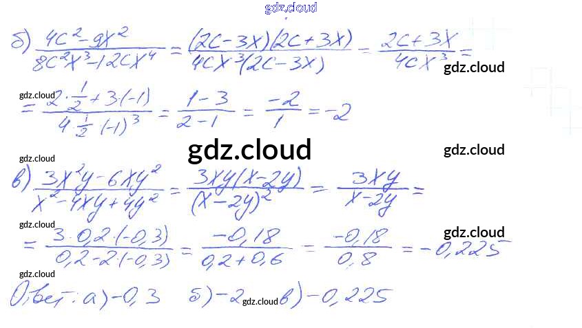 Ответы. §2. Основное свойство дроби. Сокращение дробей по Алгебре 8 класс Рабочая тетрадь Миндюк УМК Часть 1, 2 Просвещение
