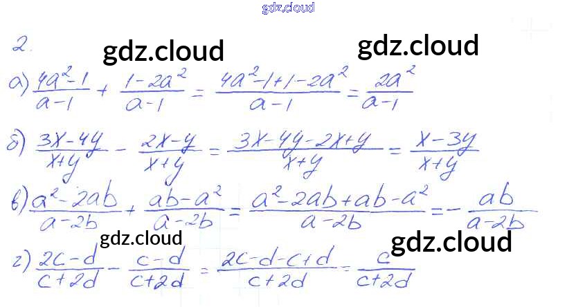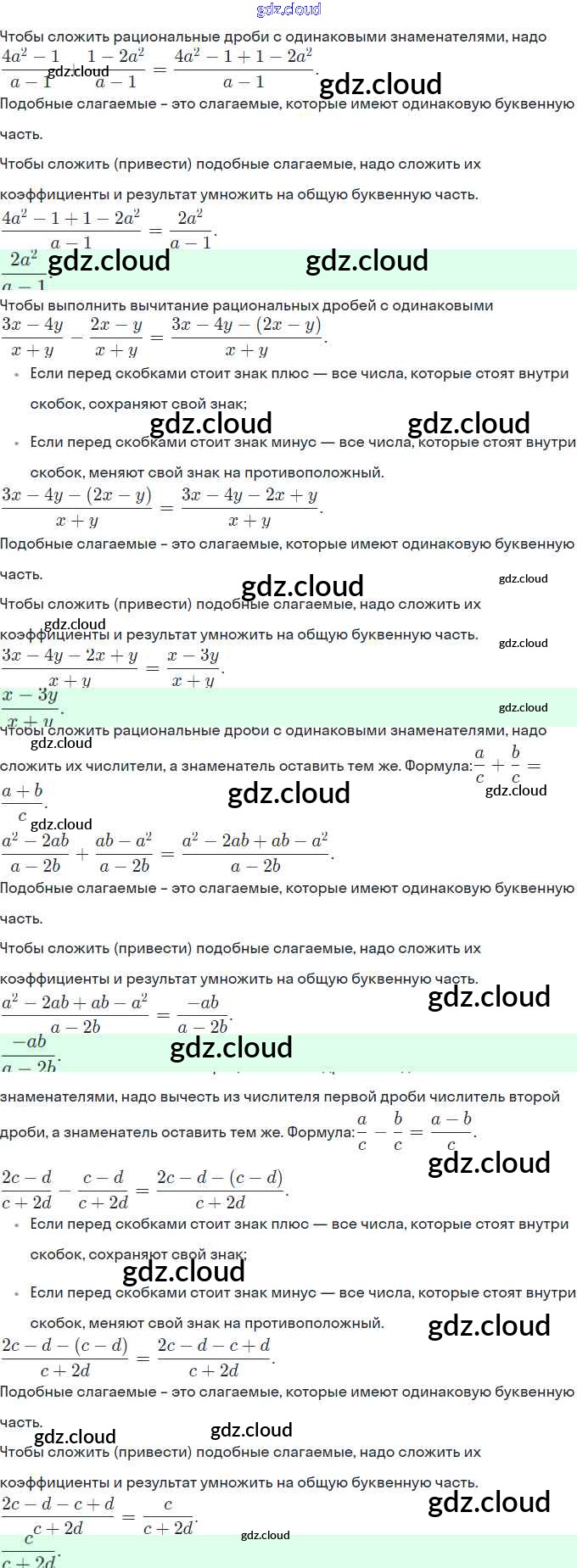 Ответы. §3. Сложение и вычитание дробей с одинаковыми знаменателями по Алгебре 8 класс Рабочая тетрадь Миндюк УМК Часть 1, 2 Просвещение
