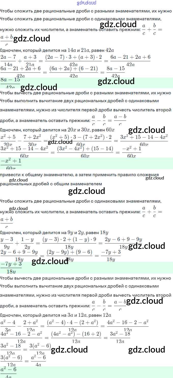 Ответы. §4. Сложение и вычитание дробей с разными знаменателями по Алгебре 8 класс Рабочая тетрадь Миндюк УМК Часть 1, 2 Просвещение