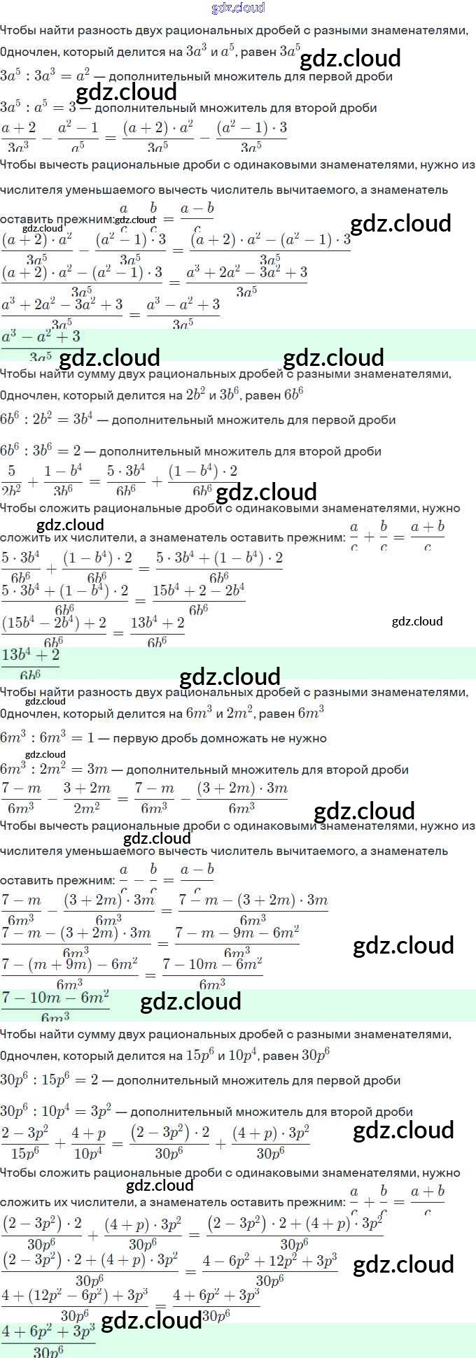 Ответы. §4. Сложение и вычитание дробей с разными знаменателями по Алгебре 8 класс Рабочая тетрадь Миндюк УМК Часть 1, 2 Просвещение