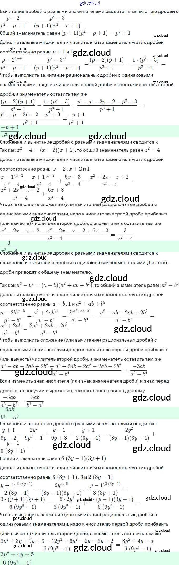 Ответы. §4. Сложение и вычитание дробей с разными знаменателями по Алгебре 8 класс Рабочая тетрадь Миндюк УМК Часть 1, 2 Просвещение