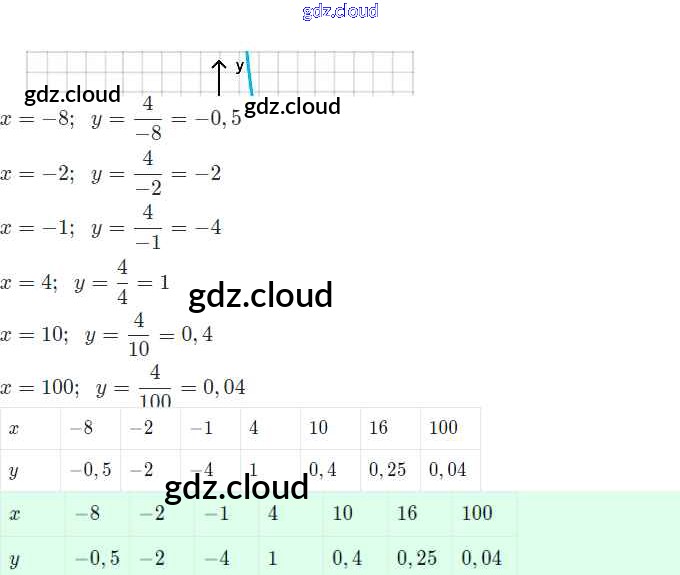 Ответы. §8. Функция y=k/x и её график по Алгебре 8 класс Рабочая тетрадь Миндюк УМК Часть 1, 2 Просвещение