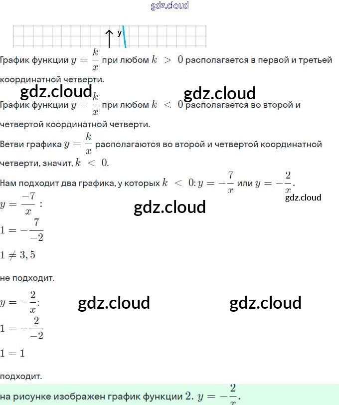Ответы. §8. Функция y=k/x и её график по Алгебре 8 класс Рабочая тетрадь Миндюк УМК Часть 1, 2 Просвещение
