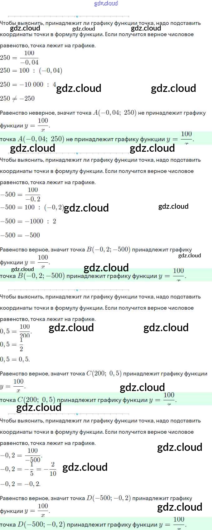 Ответы. §8. Функция y=k/x и её график по Алгебре 8 класс Рабочая тетрадь Миндюк УМК Часть 1, 2 Просвещение