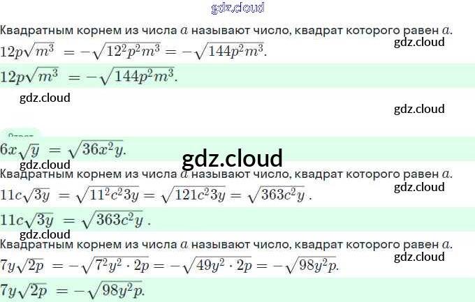 Ответы. §17. Вынесение множителя за знак корня. Внесение множителя под знак корня по Алгебре 8 класс Рабочая тетрадь Миндюк УМК Часть 1, 2 Просвещение
