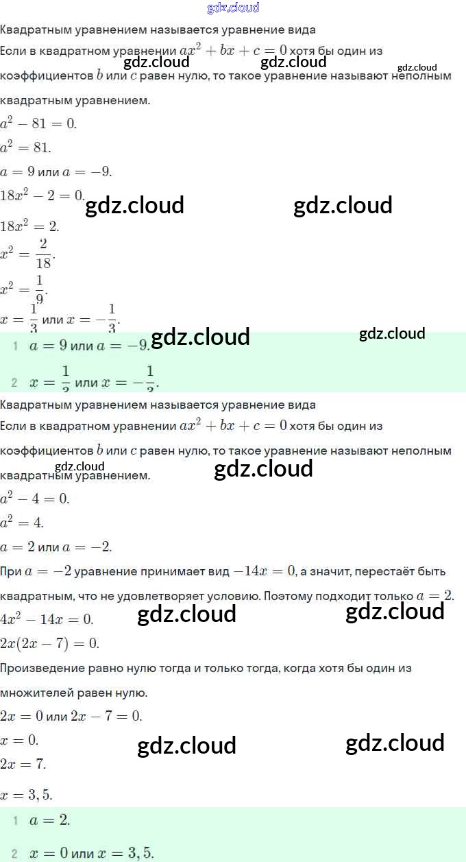 Ответы. §19. Неполные квадратные уравнения по Алгебре 8 класс Рабочая тетрадь Миндюк УМК Часть 1, 2 Просвещение