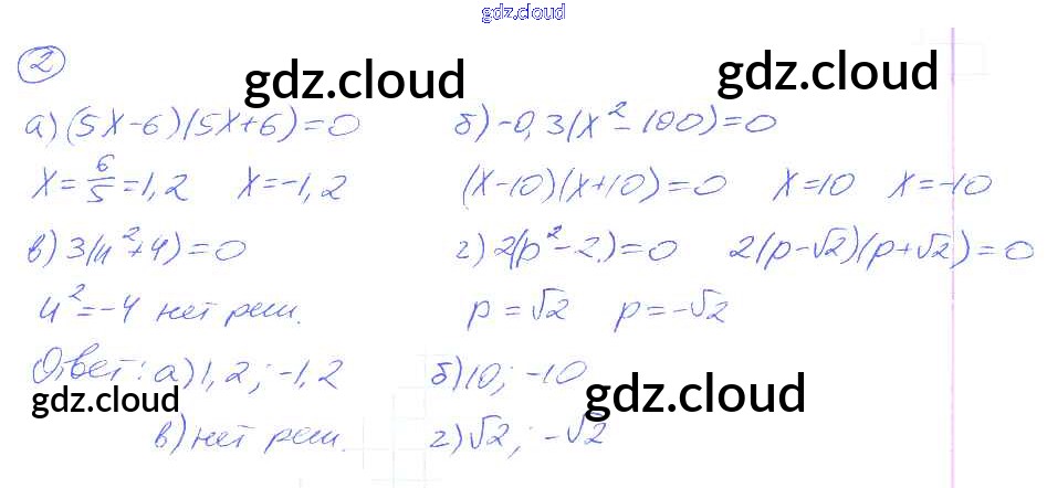 Ответы. §19. Неполные квадратные уравнения по Алгебре 8 класс Рабочая тетрадь Миндюк УМК Часть 1, 2 Просвещение