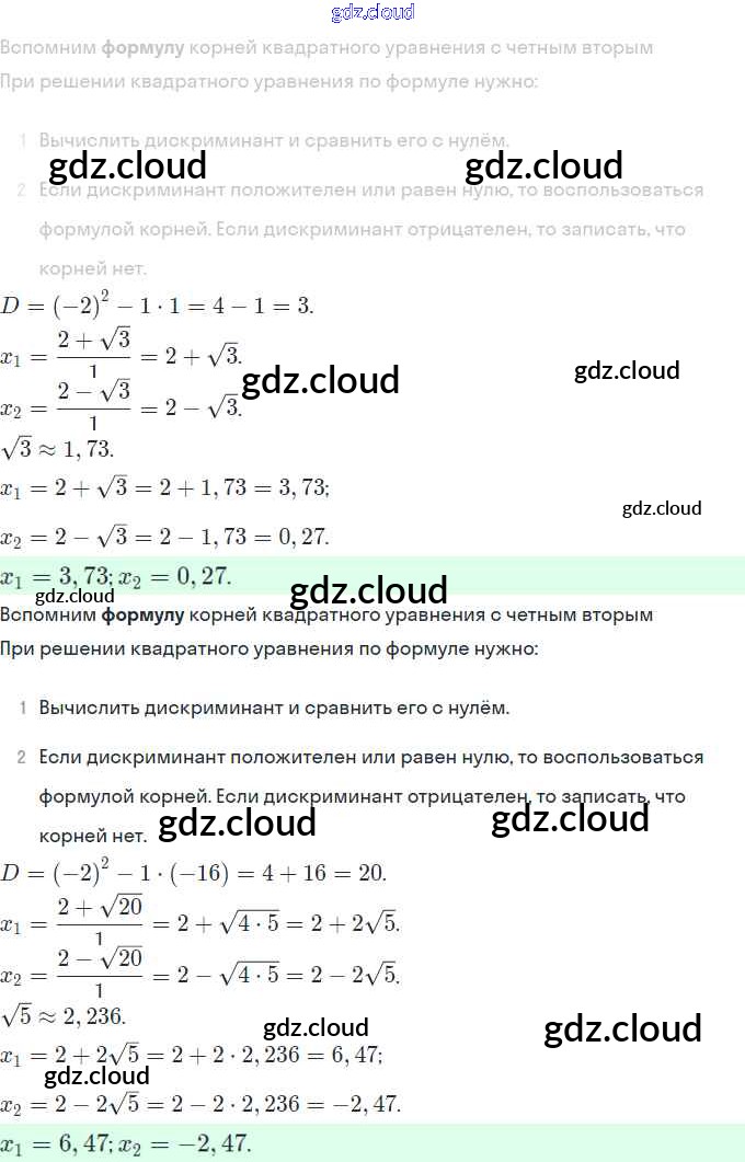 Ответы. §20. Формула корней квадратного уравнения по Алгебре 8 класс Рабочая тетрадь Миндюк УМК Часть 1, 2 Просвещение