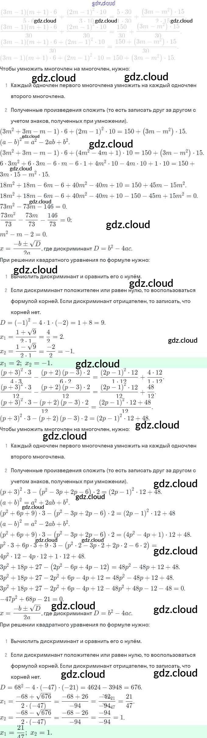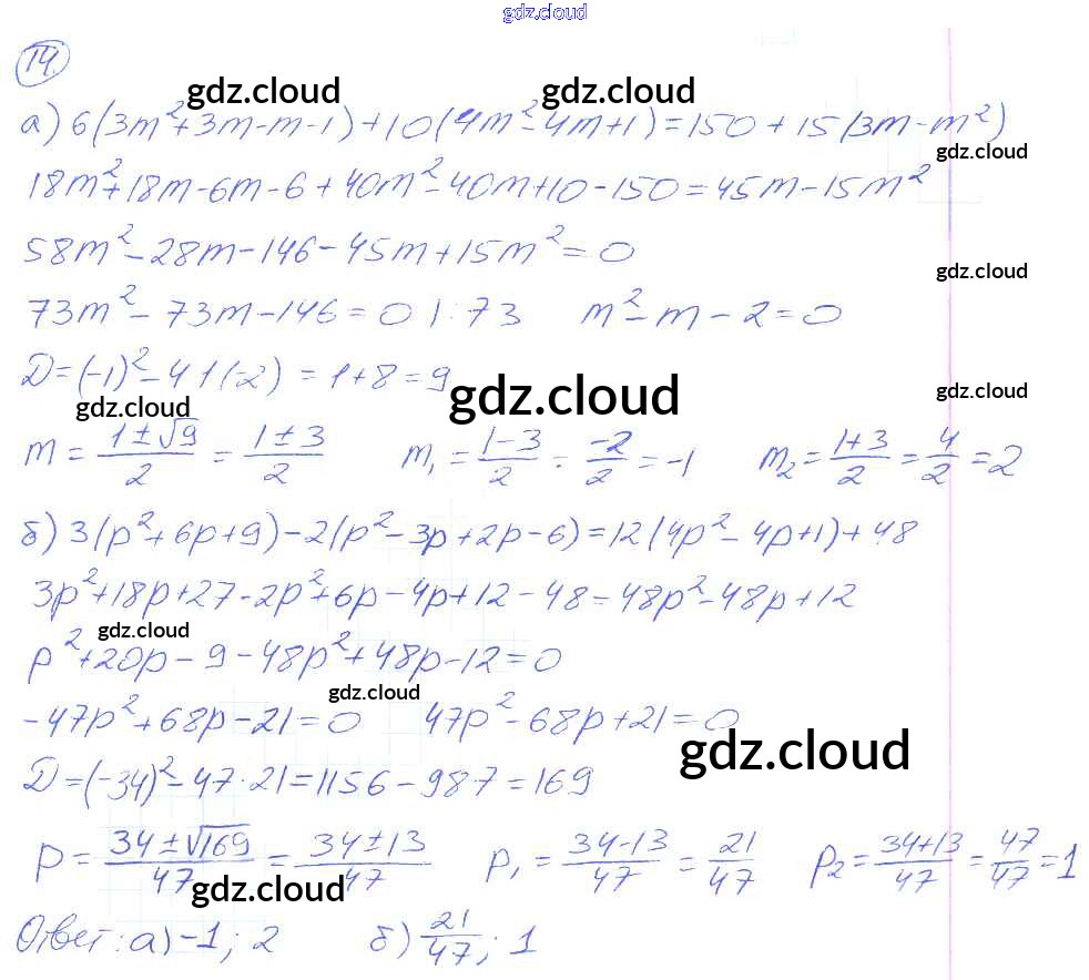 Ответы. §20. Формула корней квадратного уравнения по Алгебре 8 класс Рабочая тетрадь Миндюк УМК Часть 1, 2 Просвещение