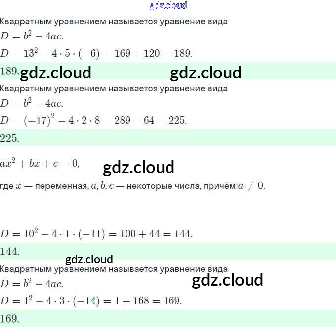 Ответы. §20. Формула корней квадратного уравнения по Алгебре 8 класс Рабочая тетрадь Миндюк УМК Часть 1, 2 Просвещение
