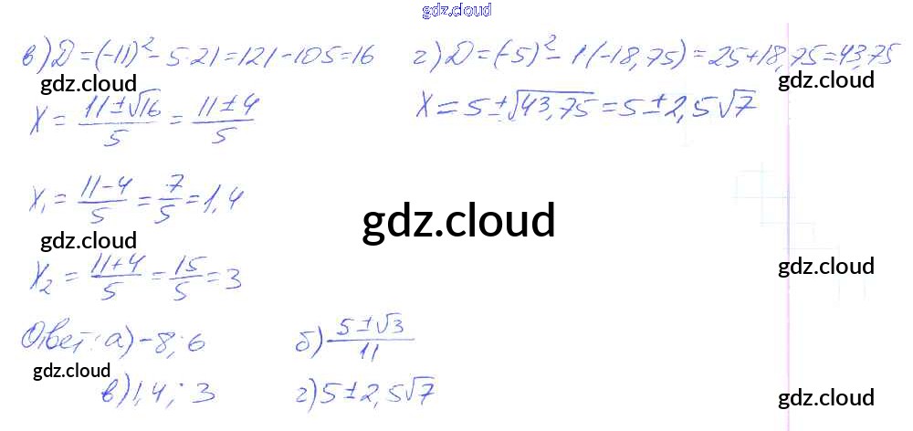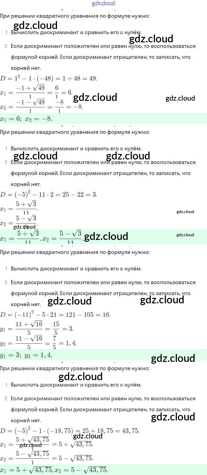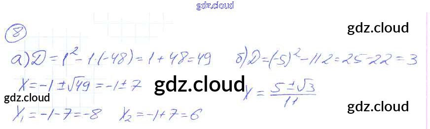 Ответы. §20. Формула корней квадратного уравнения по Алгебре 8 класс Рабочая тетрадь Миндюк УМК Часть 1, 2 Просвещение