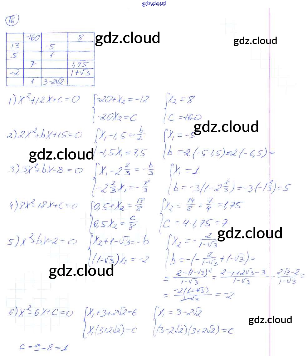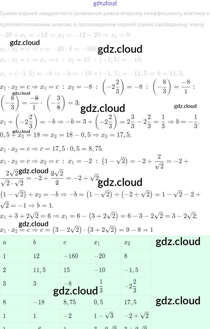 Ответы. §22. Теорема Виета по Алгебре 8 класс Рабочая тетрадь Миндюк УМК Часть 1, 2 Просвещение