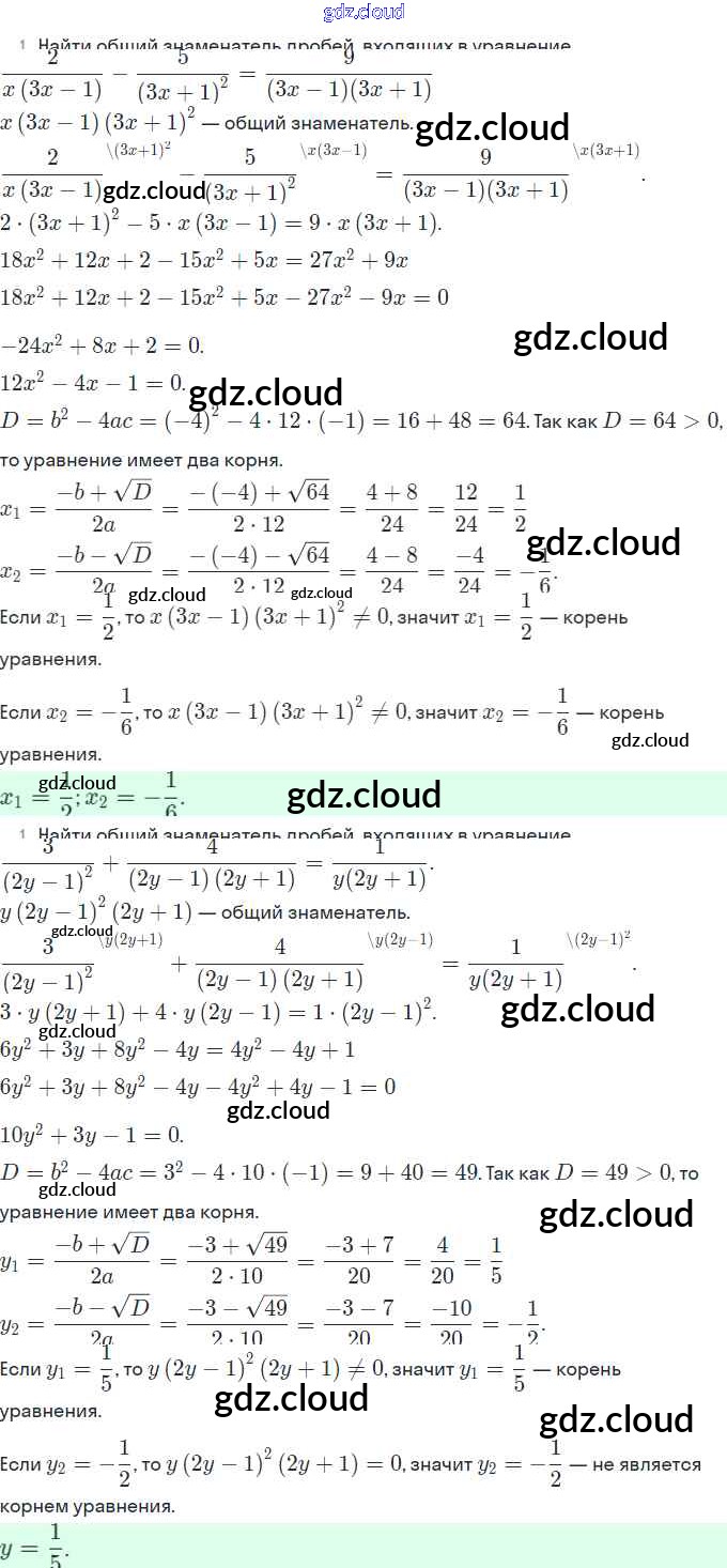 Ответы. §23. Решение дробных рациональных уравнений по Алгебре 8 класс Рабочая тетрадь Миндюк УМК Часть 1, 2 Просвещение