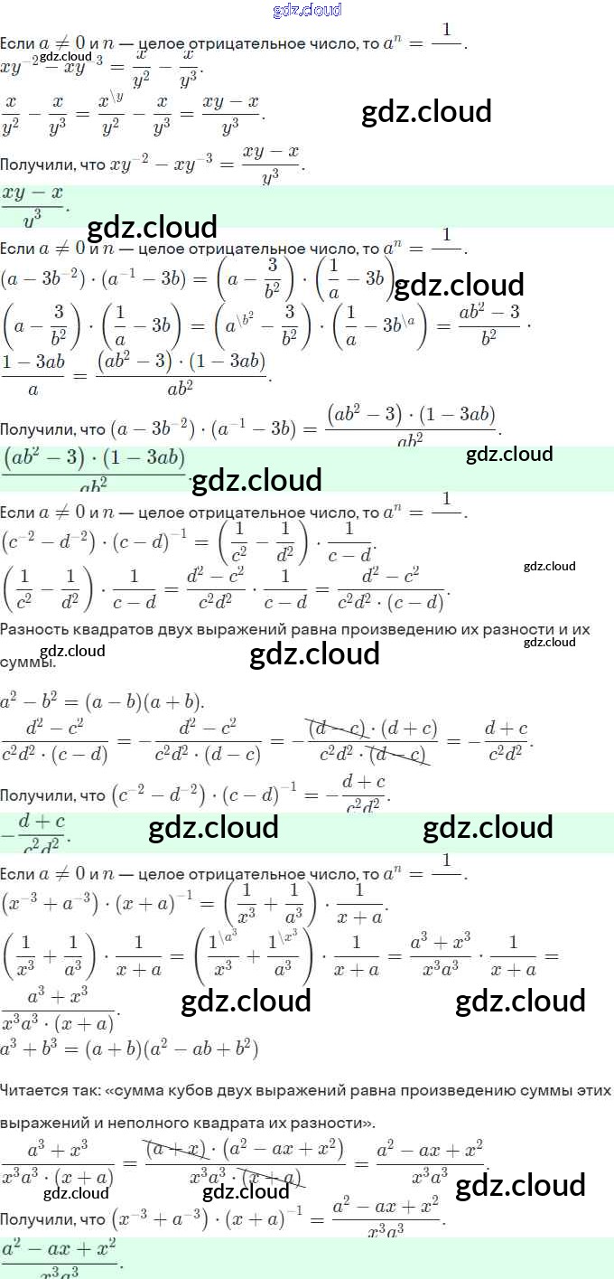 Ответы. §33. Определение степени с целым отрицательным показателем по Алгебре 8 класс Рабочая тетрадь Миндюк УМК Часть 1, 2 Просвещение