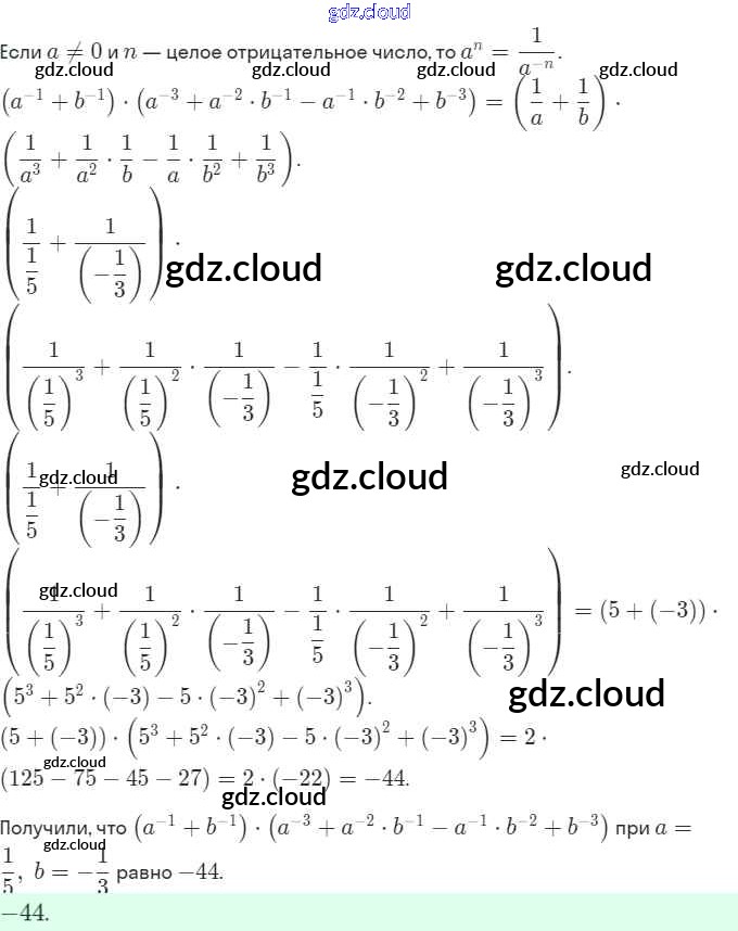 Ответы. §33. Определение степени с целым отрицательным показателем по Алгебре 8 класс Рабочая тетрадь Миндюк УМК Часть 1, 2 Просвещение