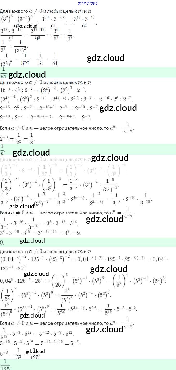 Ответы. §34. Свойства степени с целым показателем по Алгебре 8 класс Рабочая тетрадь Миндюк УМК Часть 1, 2 Просвещение