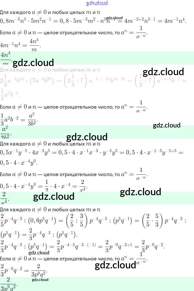 Ответы. §34. Свойства степени с целым показателем по Алгебре 8 класс Рабочая тетрадь Миндюк УМК Часть 1, 2 Просвещение