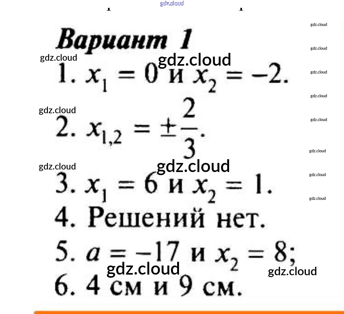 глава 3. квадратные уравнения (контрольные работы) / Квадратные уравнения (вариант) / 1