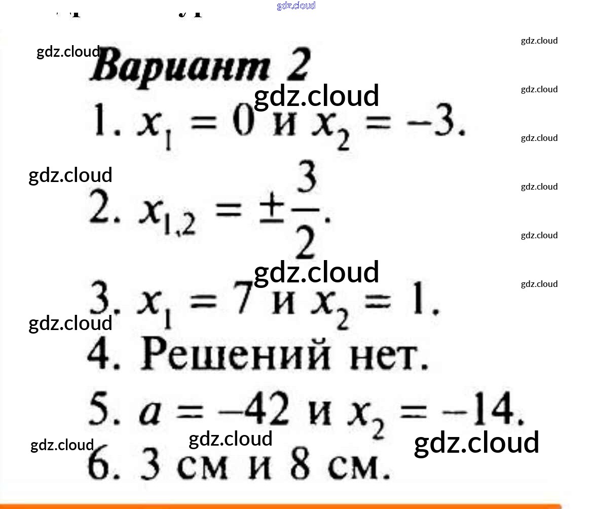 глава 3. квадратные уравнения (контрольные работы) / Квадратные уравнения (вариант) / 2