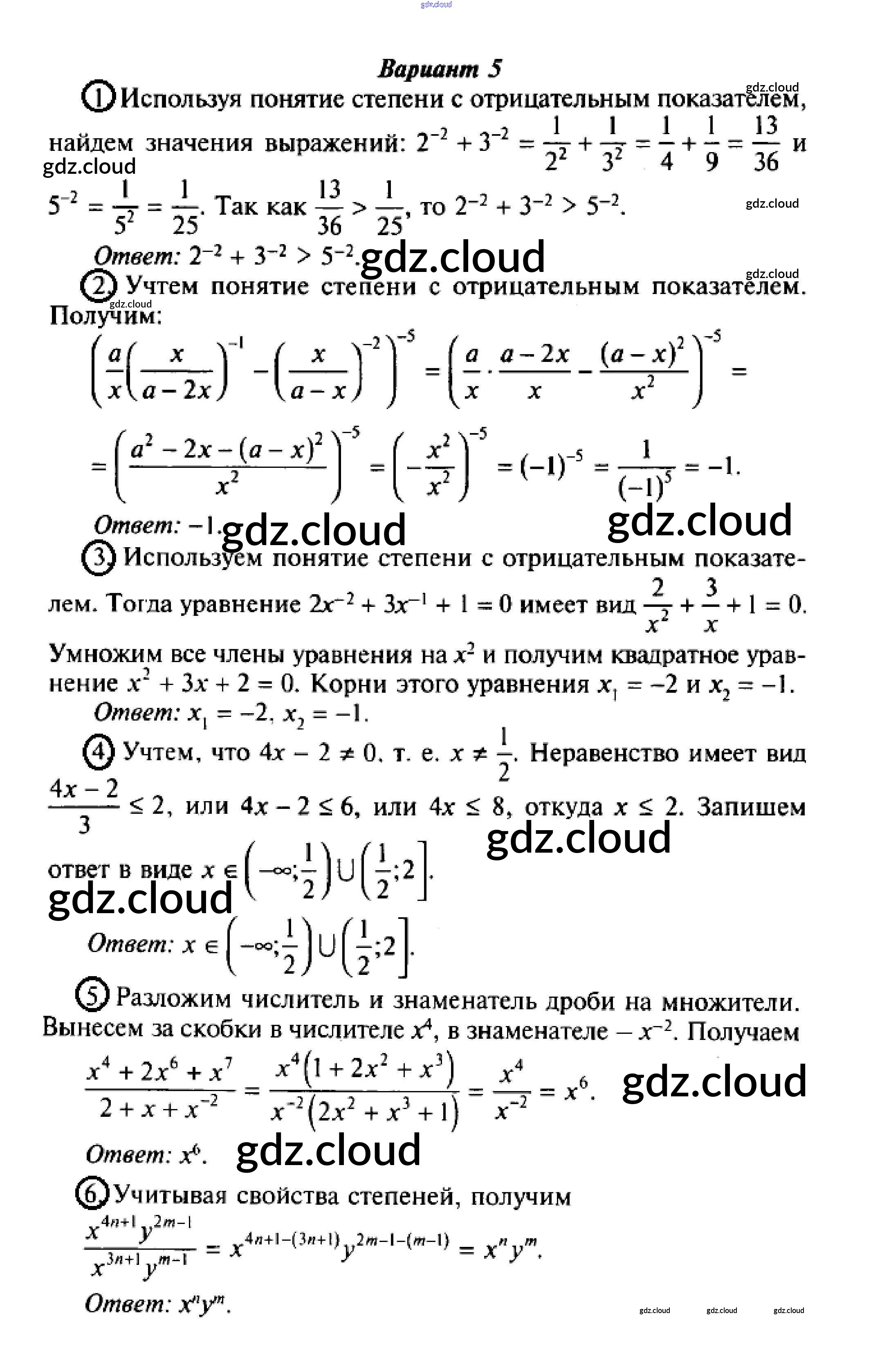 глава 5. степень с целым показателем (контрольные работы) / Степень с целым показателем (вариант) / 5