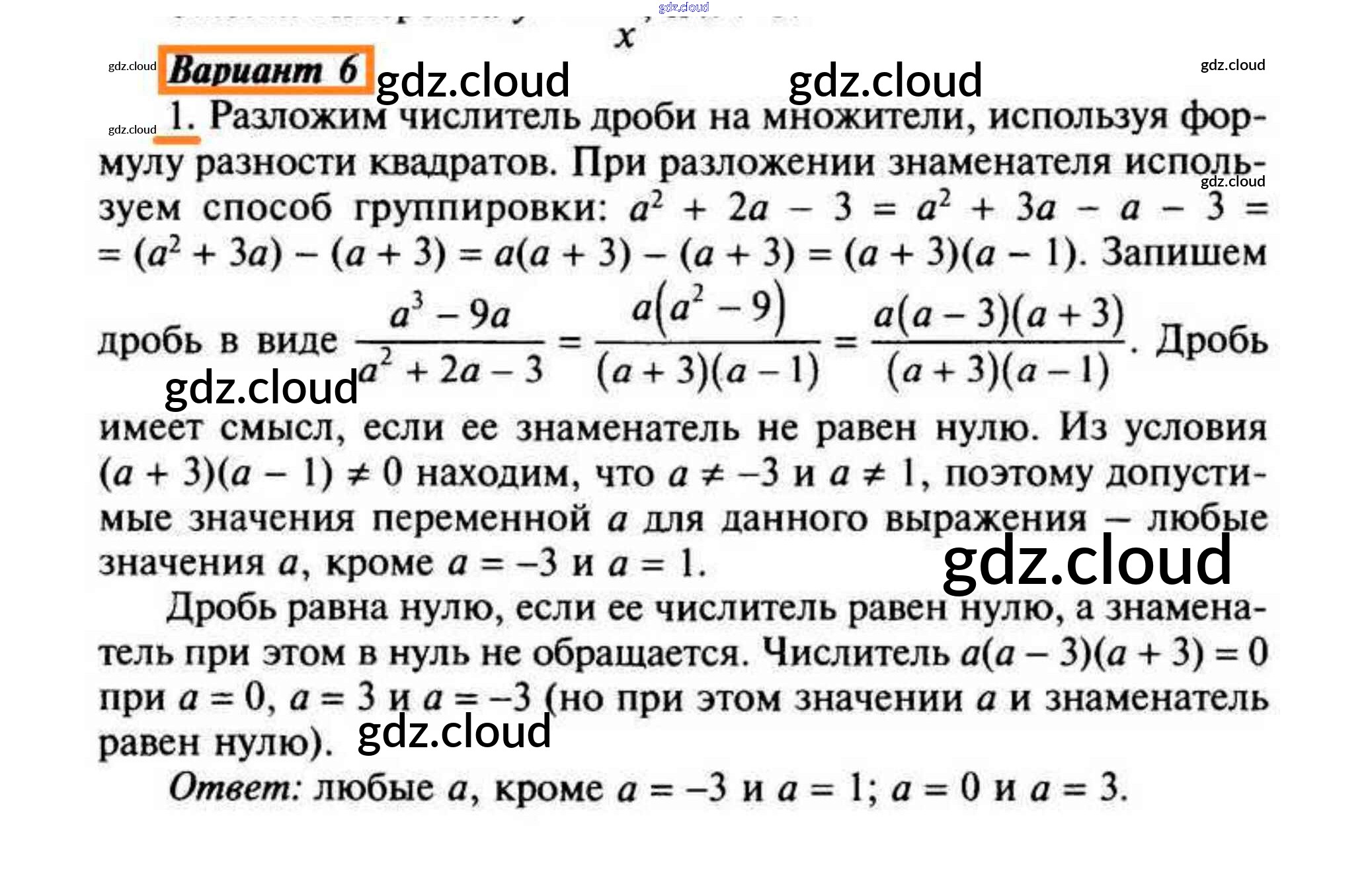 Рациональные дроби (Варианты) Ответы к Главе 1. Рациональные дроби (Контрольные работы) по Алгебре 8 класс Поурочные разработки Рурукин УМК ВАКО