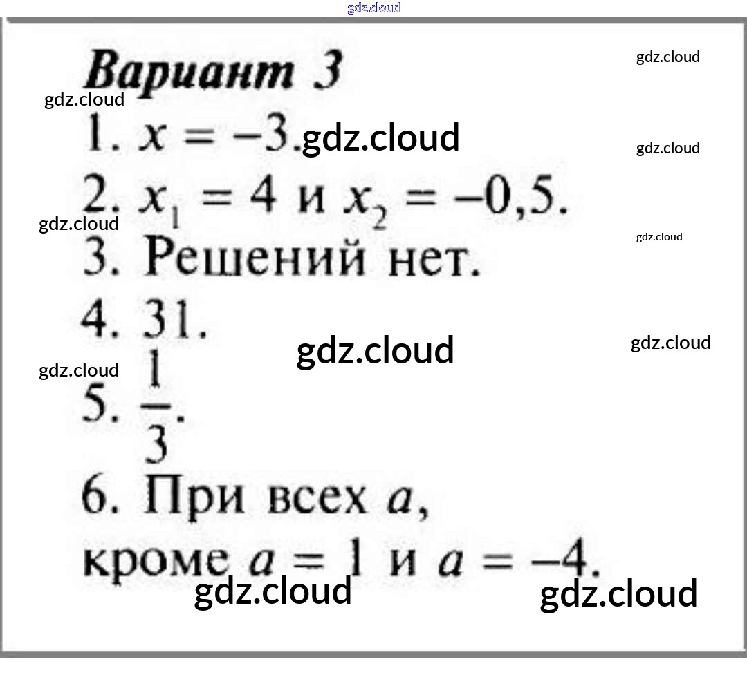 глава 3. квадратные уравнения (контрольные работы) / Квадратные уравнения. Дробные рациональные уравнения (вариант) / 3