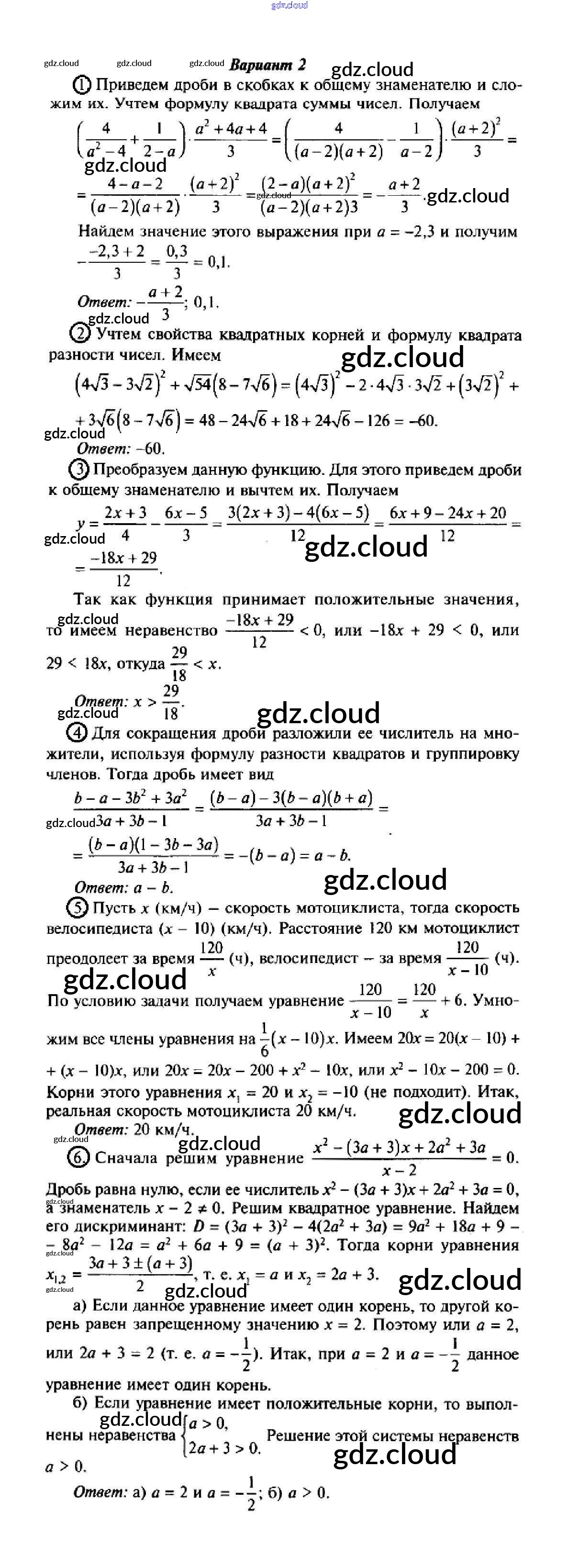 Итоговая контрольная работа (Варианты) Ответы к Главе 5. Степень с целым показателем (Контрольные работы) по Алгебре 8 класс Поурочные разработки Рурукин УМК ВАКО