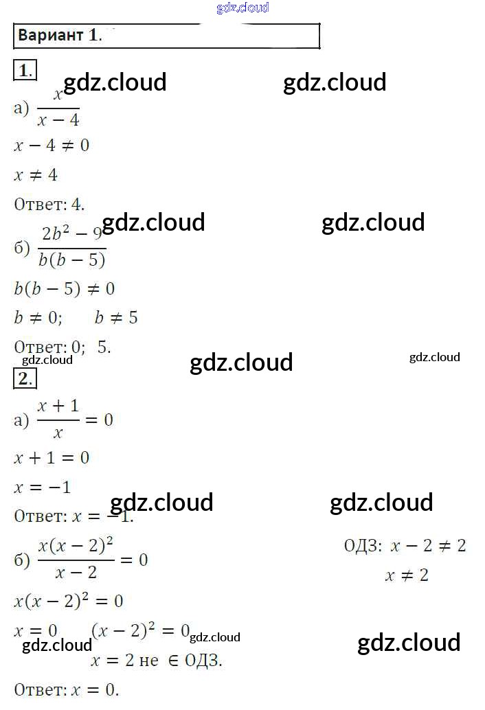 Ответы к СР-1. Варианты по Алгебре 8 класс Самостоятельные работы Александрова Мнемозина