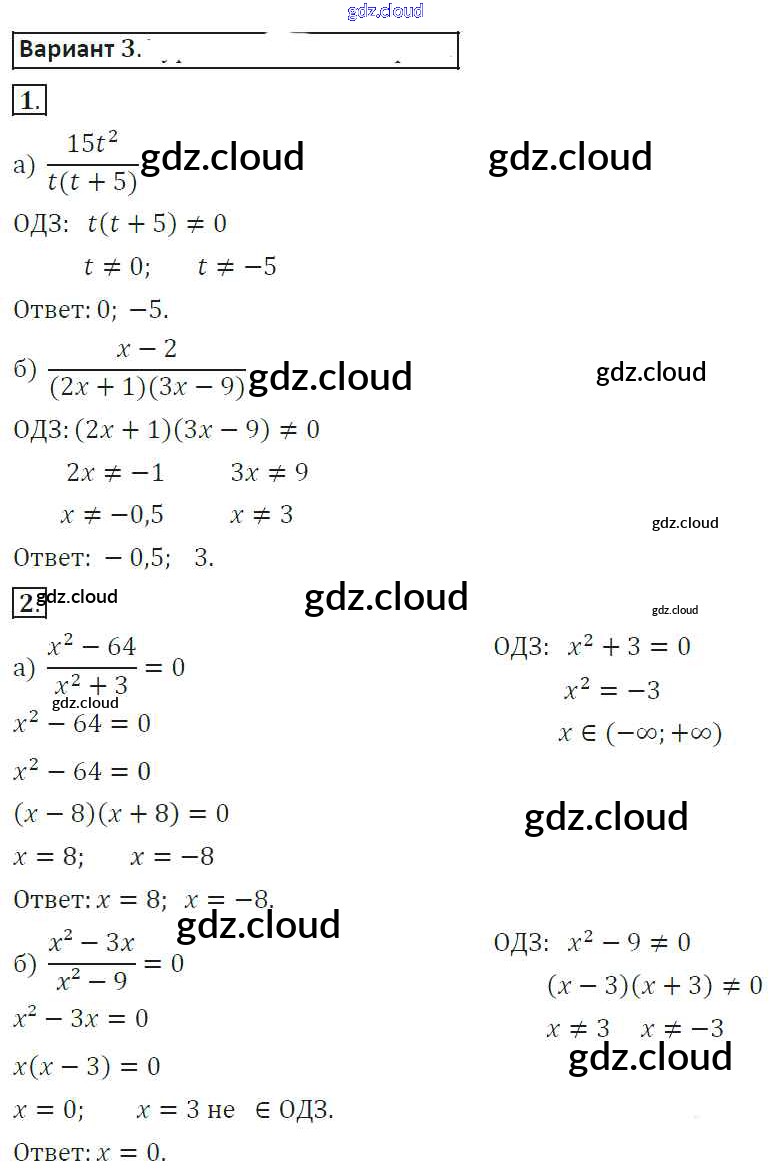 Ответ на задание 3 Самостоятельные работы Алгебра за 8 (восьмой) класс Александрова 2016