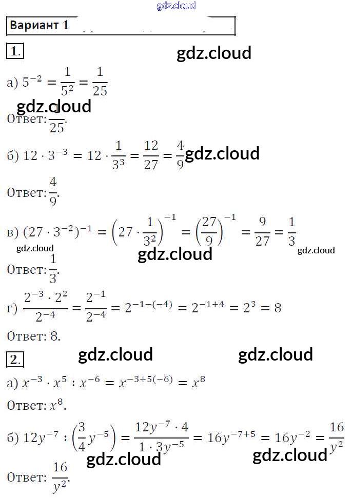 Ответ на задание 1 Самостоятельные работы Алгебра за 8 (восьмой) класс Александрова 2016