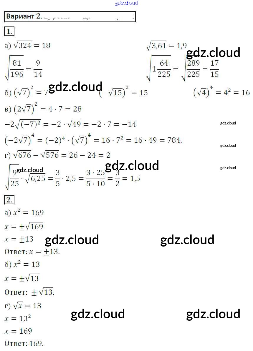 Ответ на задание 2 Самостоятельные работы Алгебра за 8 (восьмой) класс Александрова 2016