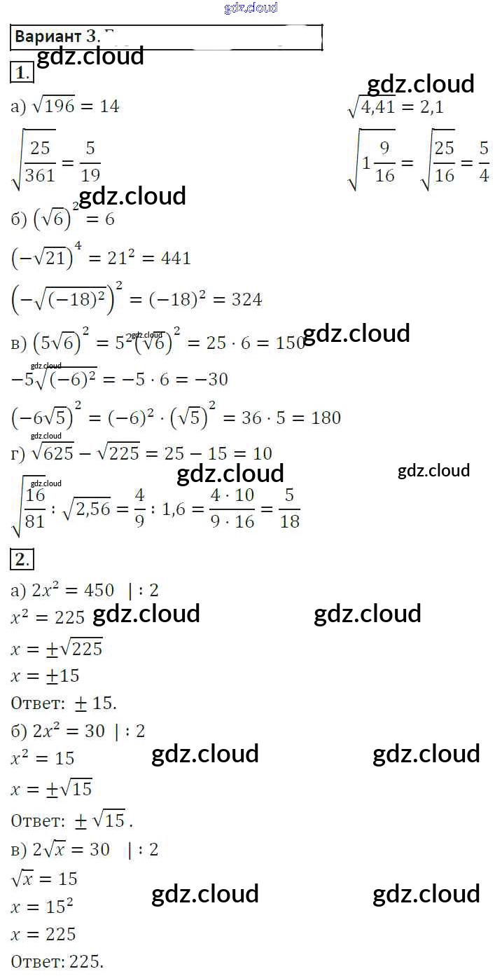 Ответ на задание 3 Самостоятельные работы Алгебра за 8 (восьмой) класс Александрова 2016