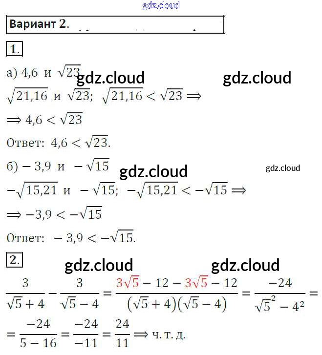 Ответ на задание 2 Самостоятельные работы Алгебра за 8 (восьмой) класс Александрова 2016