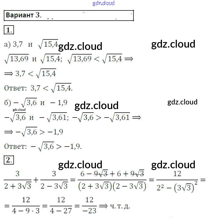 Ответ на задание 3 Самостоятельные работы Алгебра за 8 (восьмой) класс Александрова 2016