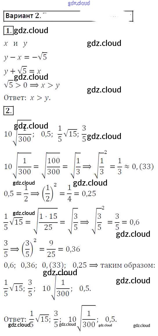Ответ на задание 2 Самостоятельные работы Алгебра за 8 (восьмой) класс Александрова 2016