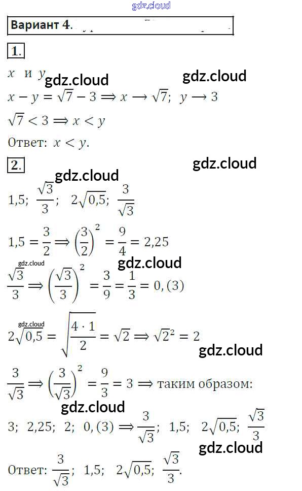 Ответ на задание 4 Самостоятельные работы Алгебра за 8 (восьмой) класс Александрова 2016