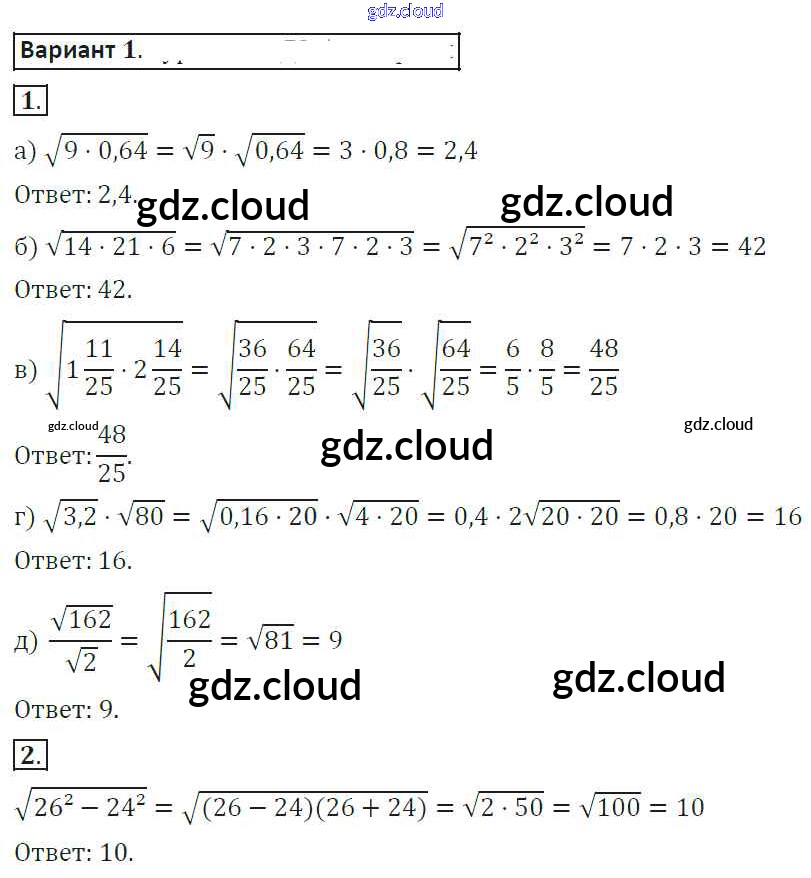 Ответ на задание 1 Самостоятельные работы Алгебра за 8 (восьмой) класс Александрова 2016