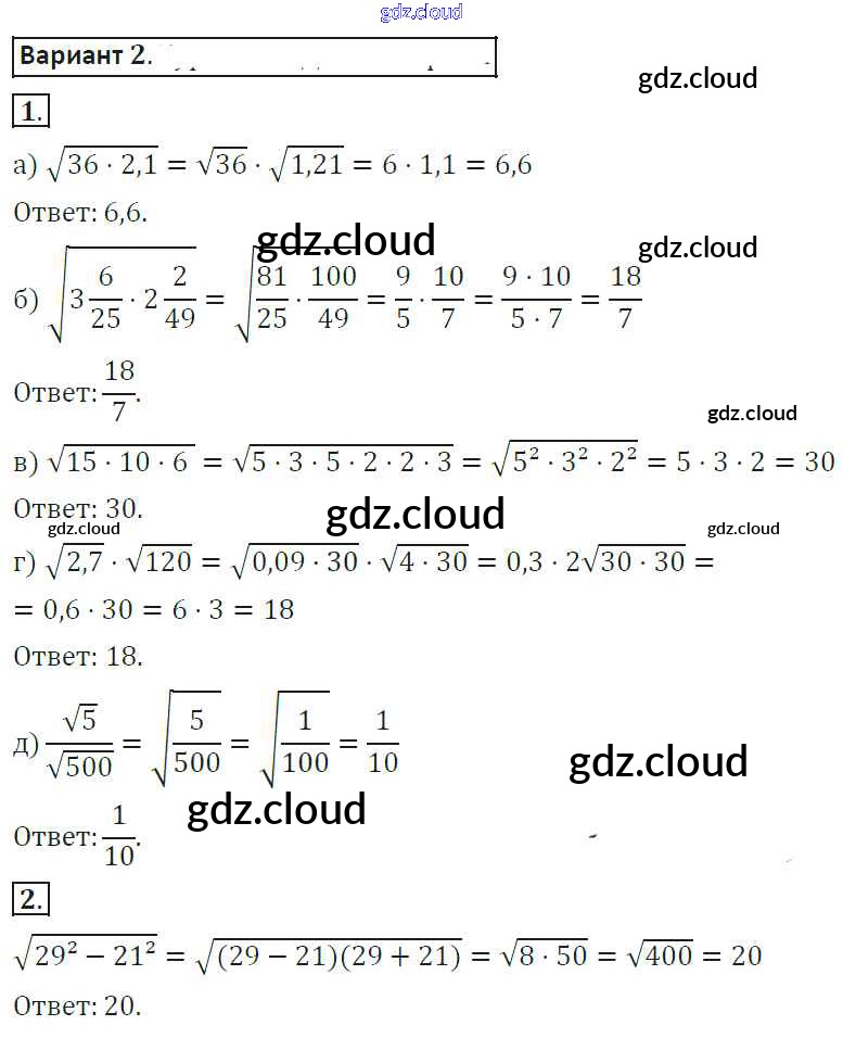 Ответ на задание 2 Самостоятельные работы Алгебра за 8 (восьмой) класс Александрова 2016