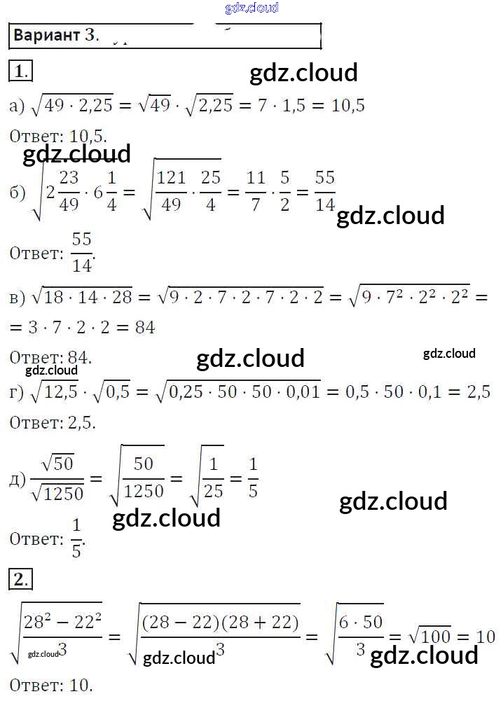 Ответ на задание 3 Самостоятельные работы Алгебра за 8 (восьмой) класс Александрова 2016