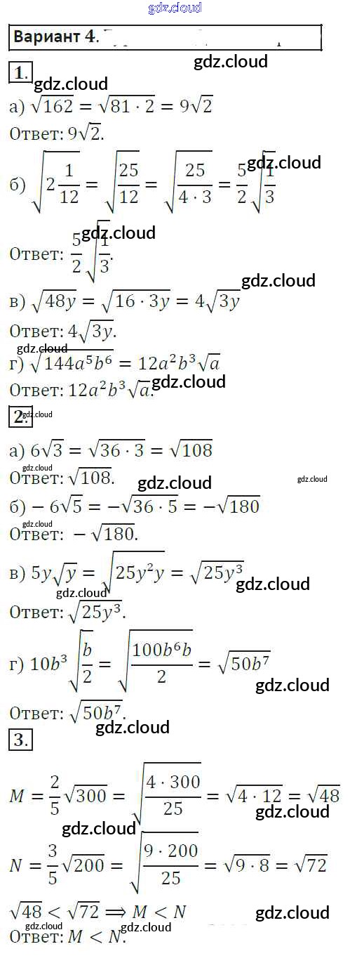 Ответ на задание 4 Самостоятельные работы Алгебра за 8 (восьмой) класс Александрова 2016