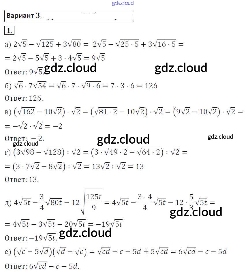 Ответ на задание 3 Самостоятельные работы Алгебра за 8 (восьмой) класс Александрова 2016