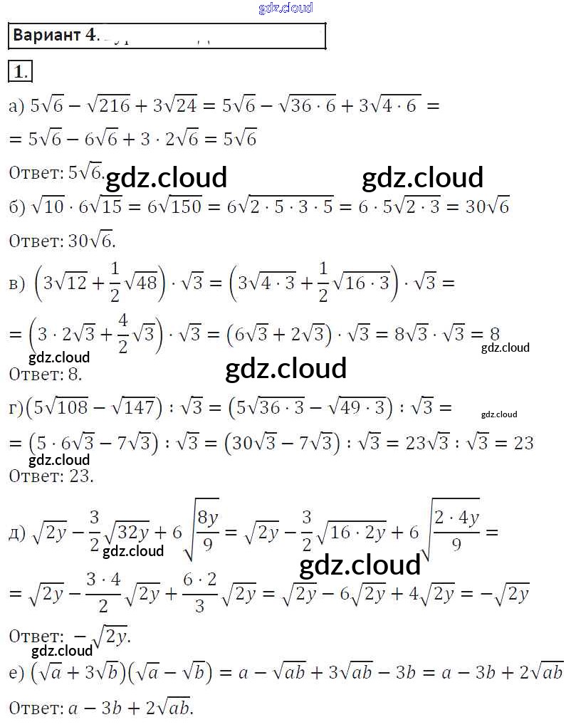 Ответ на задание 4 Самостоятельные работы Алгебра за 8 (восьмой) класс Александрова 2016
