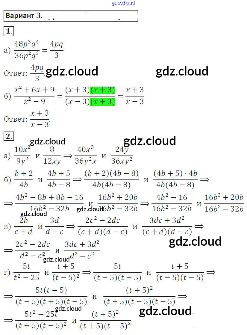 Ответ на задание 3 Самостоятельные работы Алгебра за 8 (восьмой) класс Александрова 2016