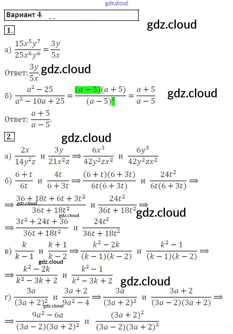 Ответ на задание 4 Самостоятельные работы Алгебра за 8 (восьмой) класс Александрова 2016