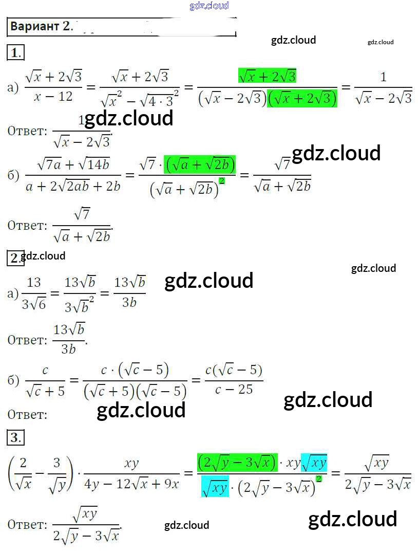Ответ на задание 2 Самостоятельные работы Алгебра за 8 (восьмой) класс Александрова 2016