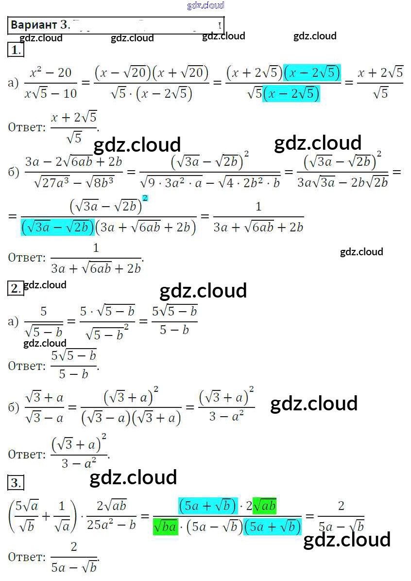Ответ на задание 3 Самостоятельные работы Алгебра за 8 (восьмой) класс Александрова 2016