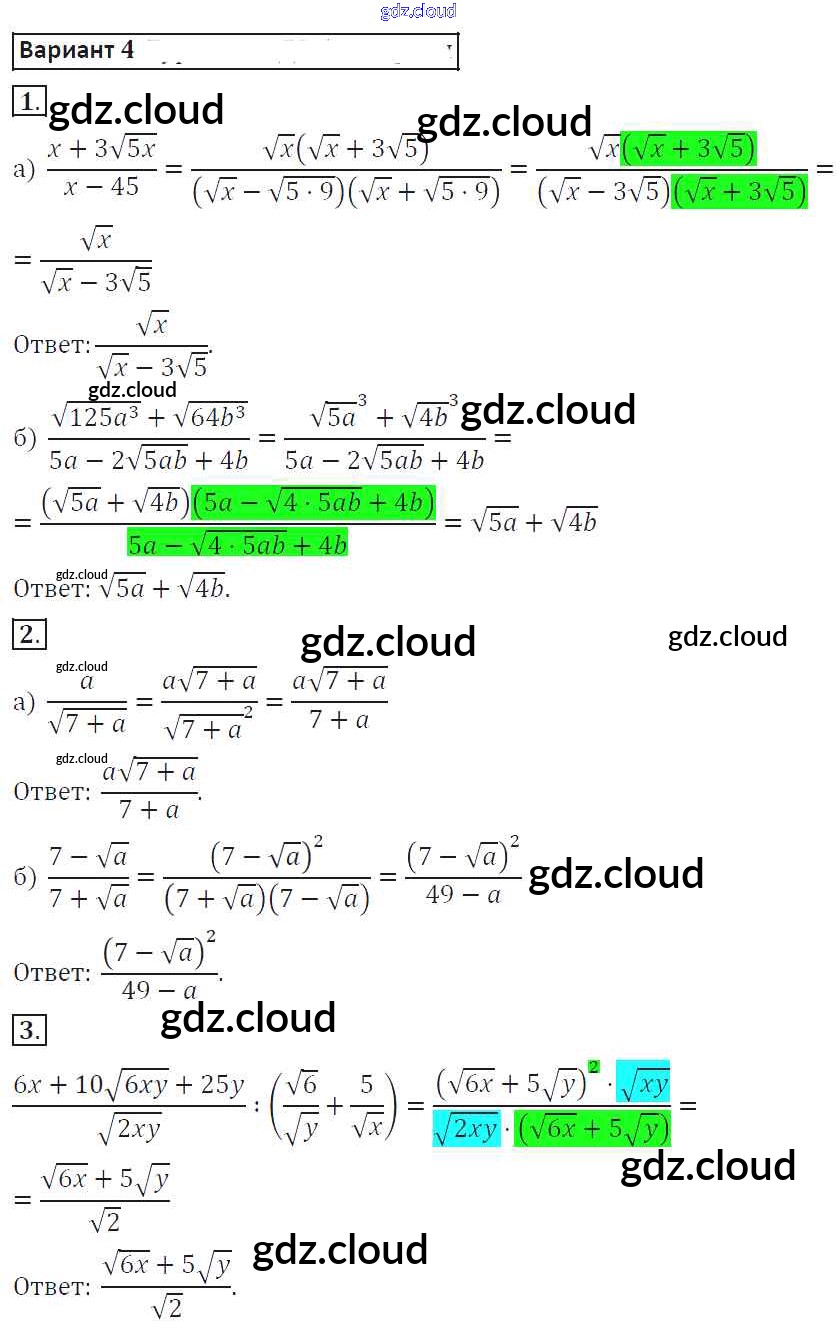 Ответ на задание 4 Самостоятельные работы Алгебра за 8 (восьмой) класс Александрова 2016