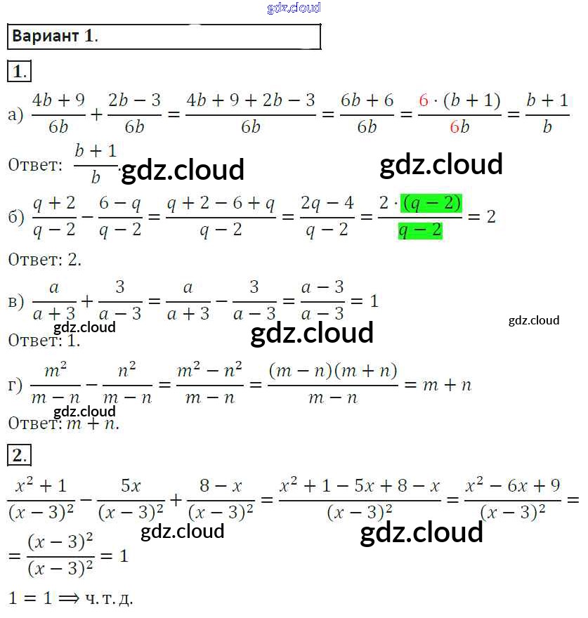 Ответ на задание 1 Самостоятельные работы Алгебра за 8 (восьмой) класс Александрова 2016